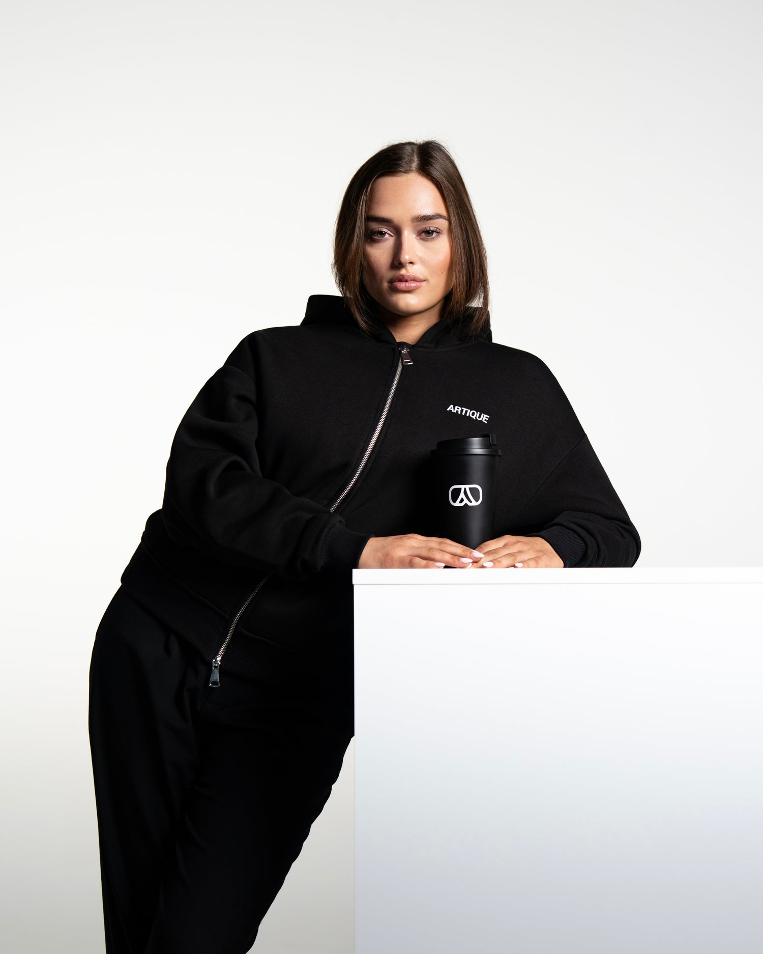 Structured, minimal, and built to hold its shape. Designed with an oversized fit, dropped shoulders, and clean lines. Features an emblem print on the chest and a brushed metal ARTIQUE tag at the back of the hood. Finished with a full-length zipper and functional side pockets. Made from a premium 70% cotton, 30% polyester blend for lasting structure and comfort.